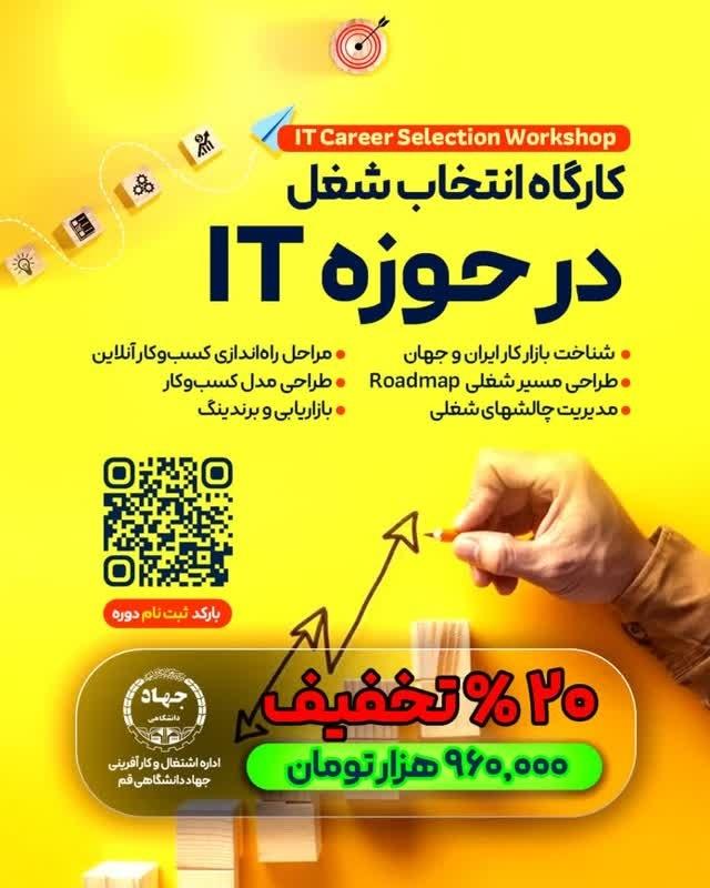 این دوره 12 ساعتی با محوریت انتخاب شغل در حوزه فناوری اطلاعات با هدف شناخت مسیرهای شغلی آیندهدار، آشنایی با مهارتهای کلیدی ورود به بازار کار، تصمیمگیری آگاهانه برای انتخاب شغلی پایدار برگزار می شود.